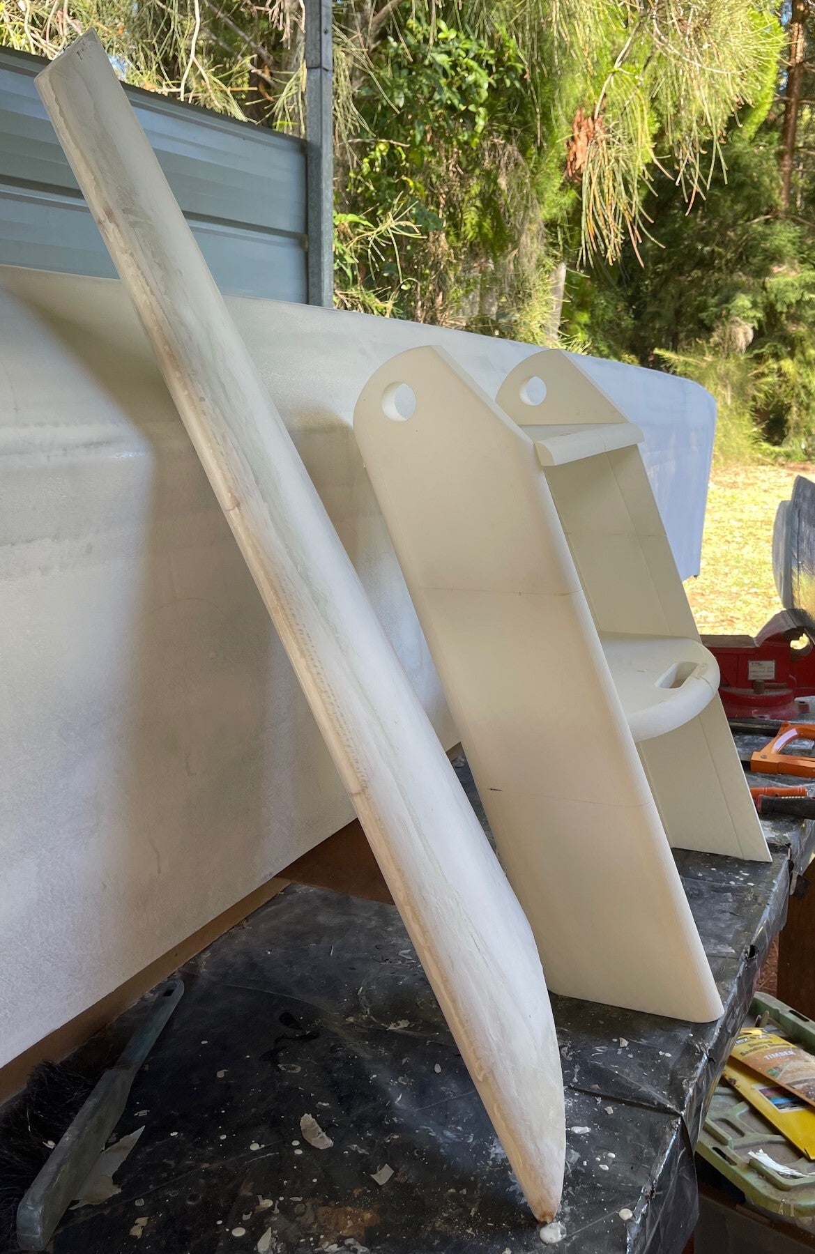 We do provide instructions with each of our kits but please note this one requires experiance when it comes to fibreglassing. This is a load bearing object and therfore needs stengthening in the right places. On the core material we provide a 5mm channel, both on the underside of the actual steps, and the insides of the legs. These channels are basically filled with fibreglass and then a coat of glass over the entire set of steps is the process. Again we used 400gsm biaxial 100mm tape and epoxy resin.
